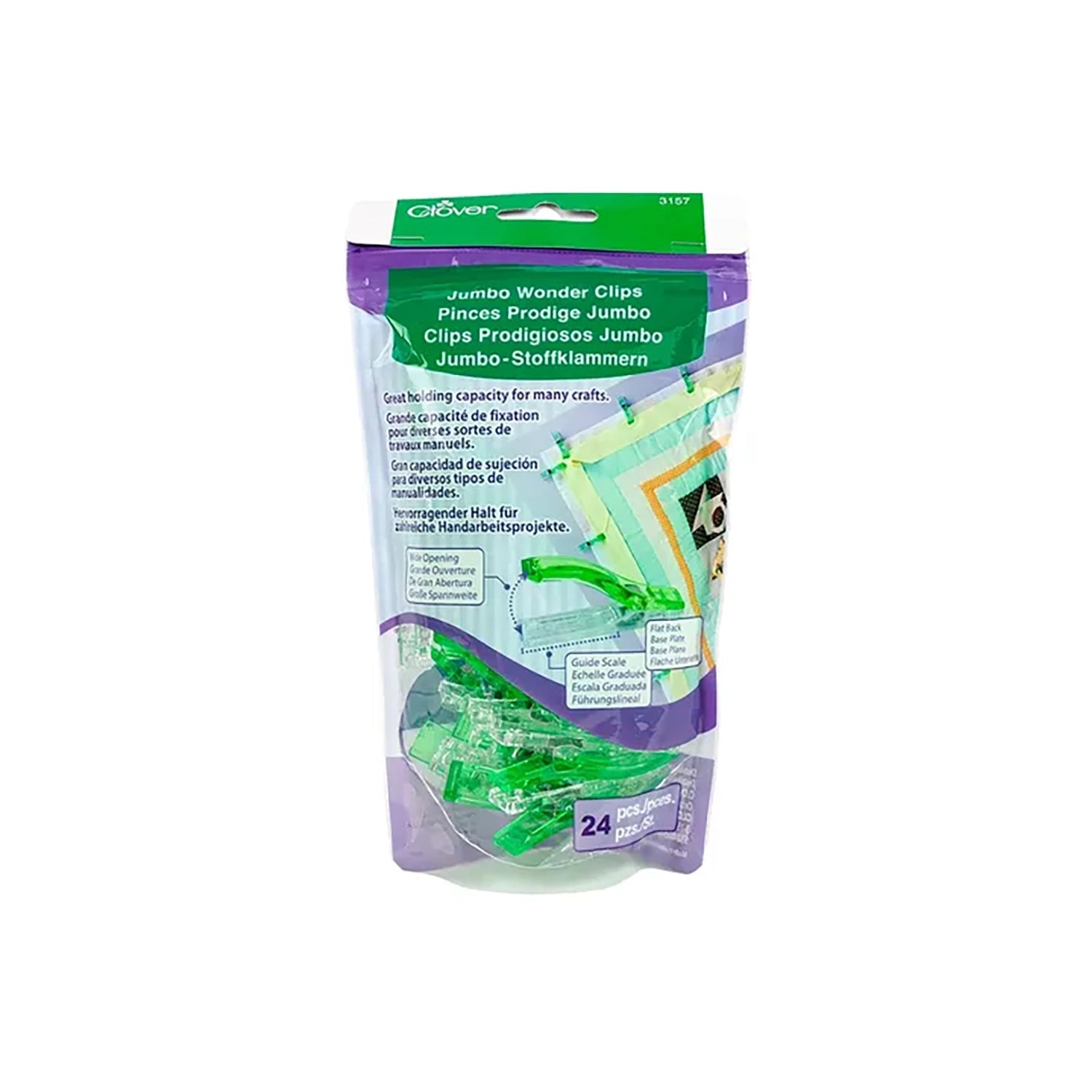 The Clover Jumbo Wonder clips have great holding capacity for many craft projects. The clip measures 2-1/4in long and is marked with 3/16in, 1-4in, 3/8in, 1-3/8in, 1/2in, 3/4in and 1in seam allowances.