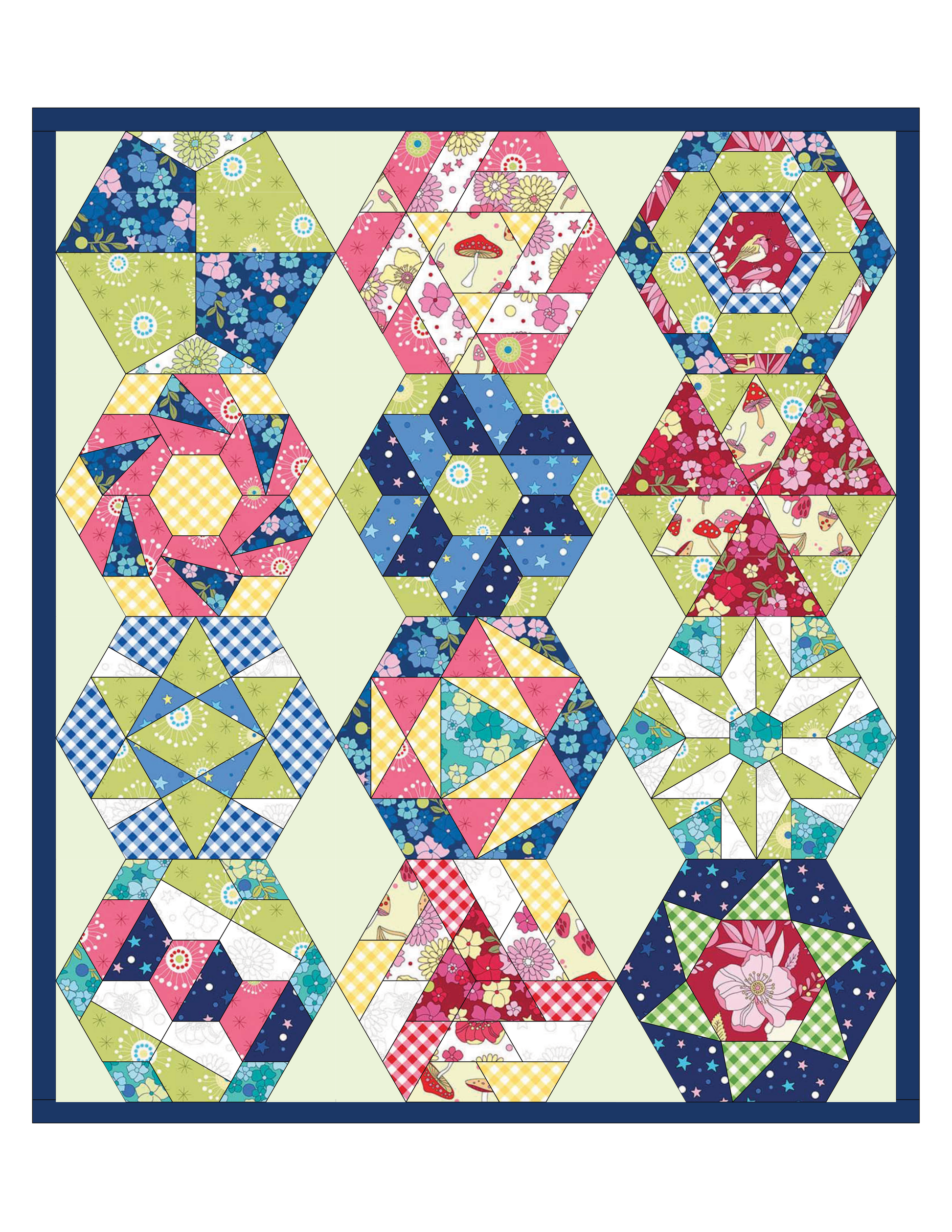 Bring your EPP stitching know-how and expertise to make this colorful hexagon quilt.