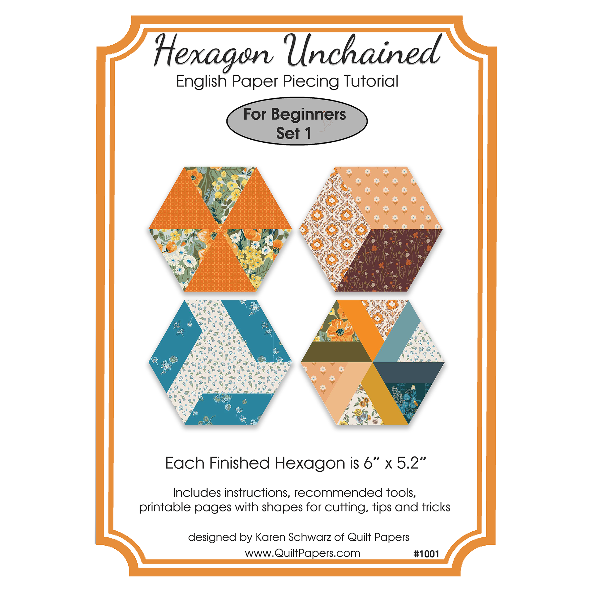 Each finished hexagon is 6"x5.2". The tutorial includes the paper pieces needed to complete each block. Additional precut paper pieces are available in my shop. Instructions to finish quilts or projects are NOT included.